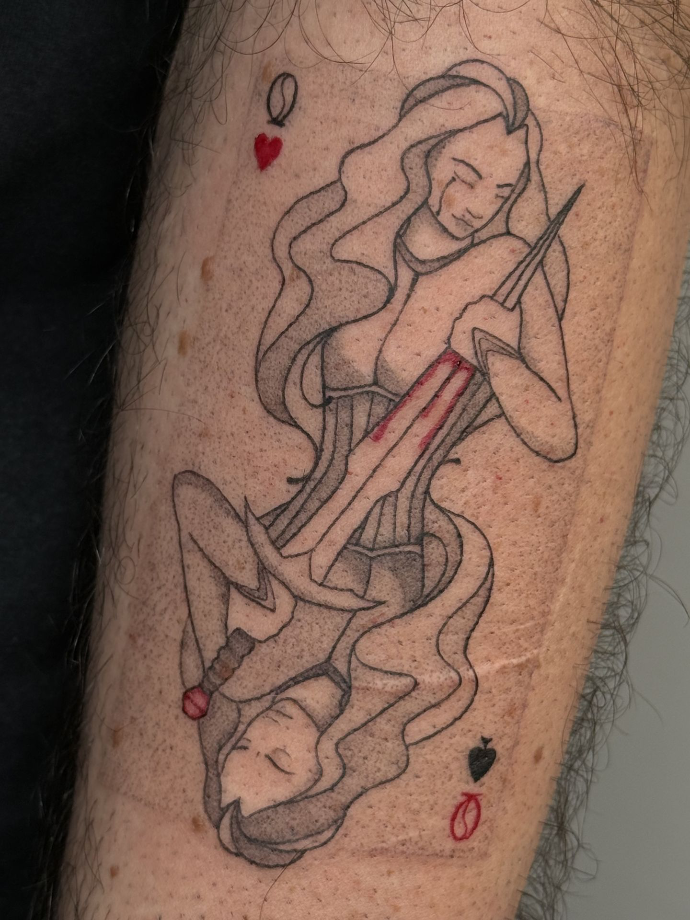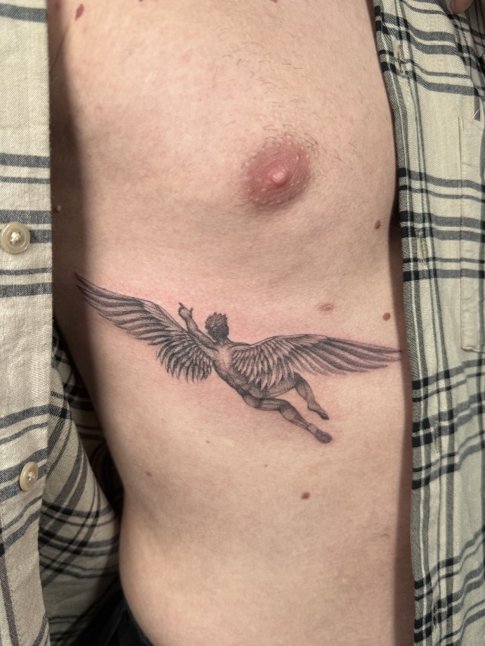 Technique d'ombrage, pour un tatouage délicat et texturé.